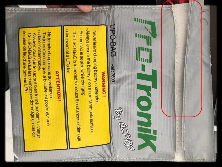 Ensuite positionnez votre batterie dans le "bag safe" pendant l'équilibrage et la recharge de votre batterie.