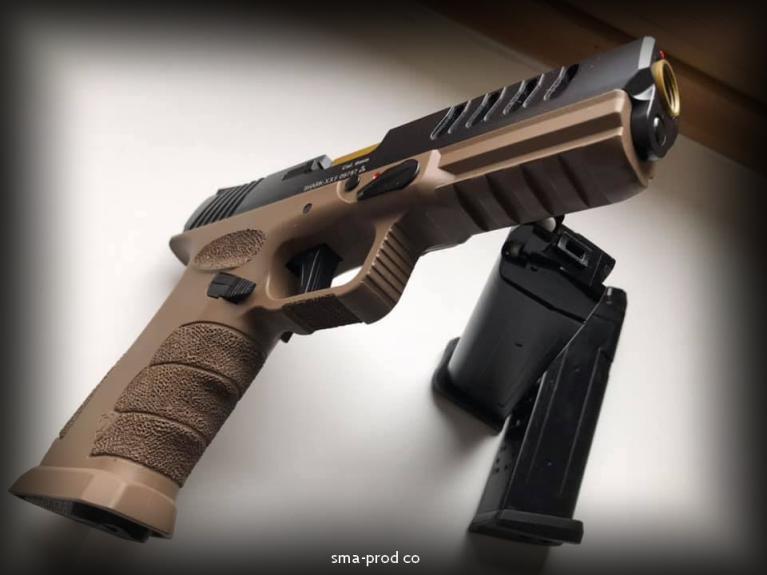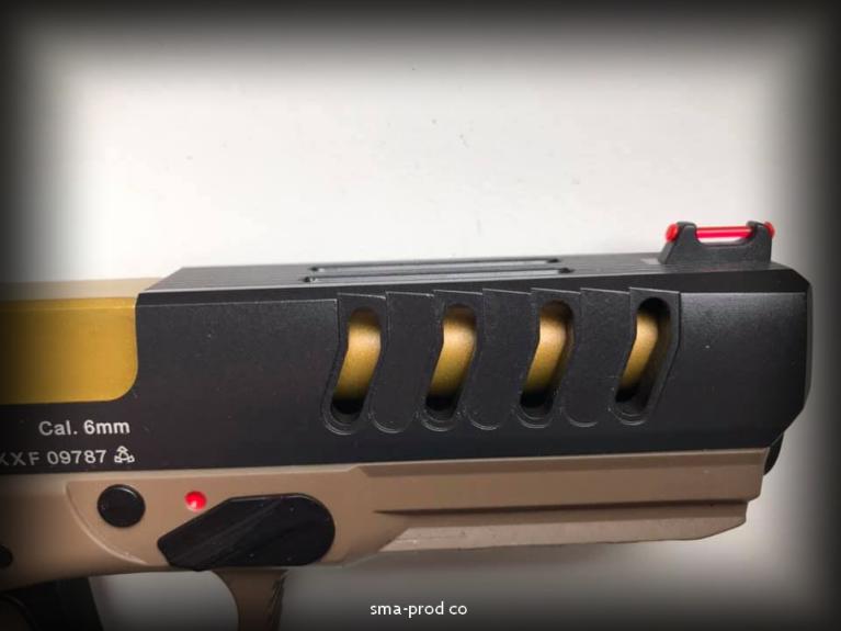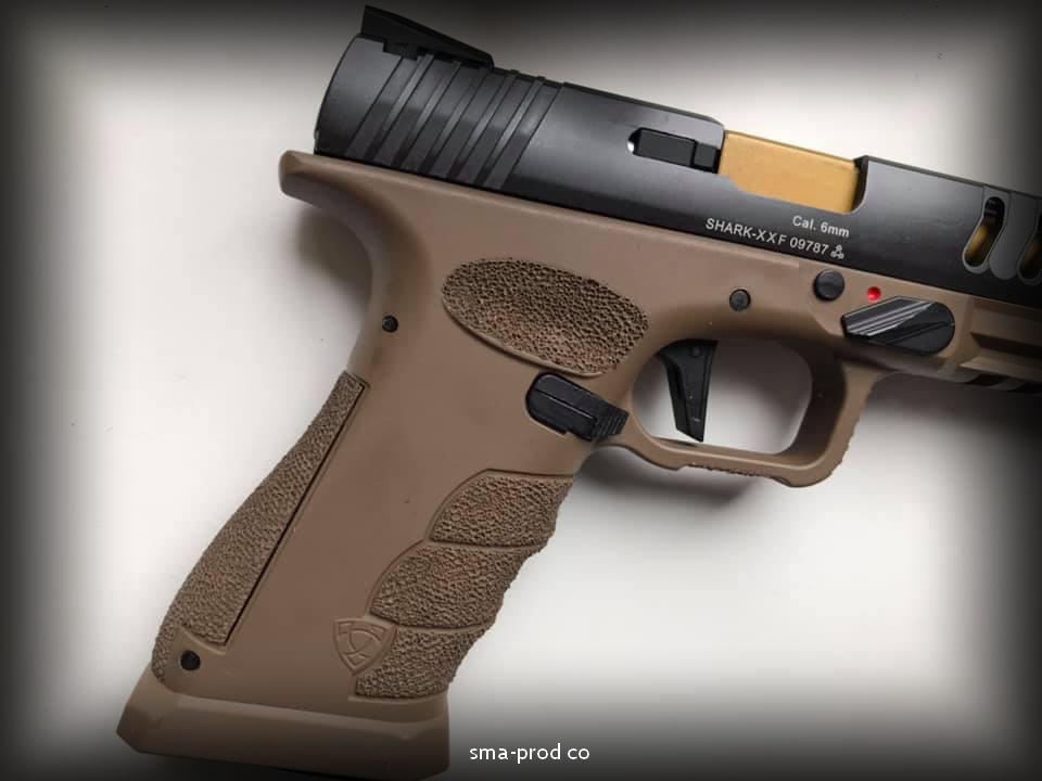 Aujourd'hui, je vous parle de ce beau Pa en gaz blow back SHARK bi-couleur plutôt racé de chez APS Made in Asia.