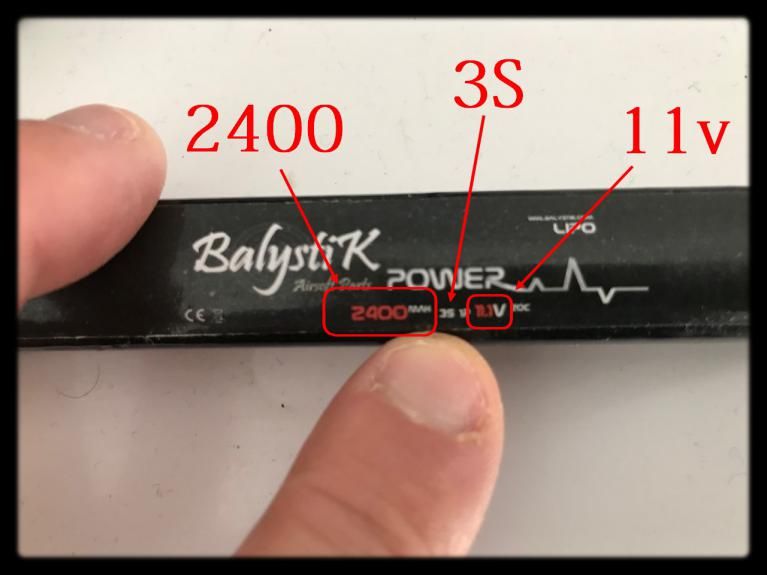 Pour charger correctement votre batterie LIPO, regardez ce qui est indiqué dessus, ex : 2400 = énergie délivrable / 3S = nombre de CELLS interne / 11v = la tension (la photo, ci-dessus, à droite, indique donc que les réglages actuels du chargeurs ne sont pas encore adaptés à la batterie que l'on a prise pour le test).